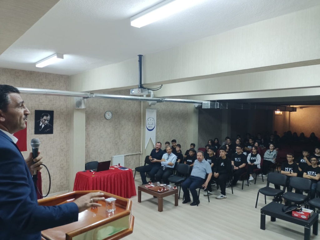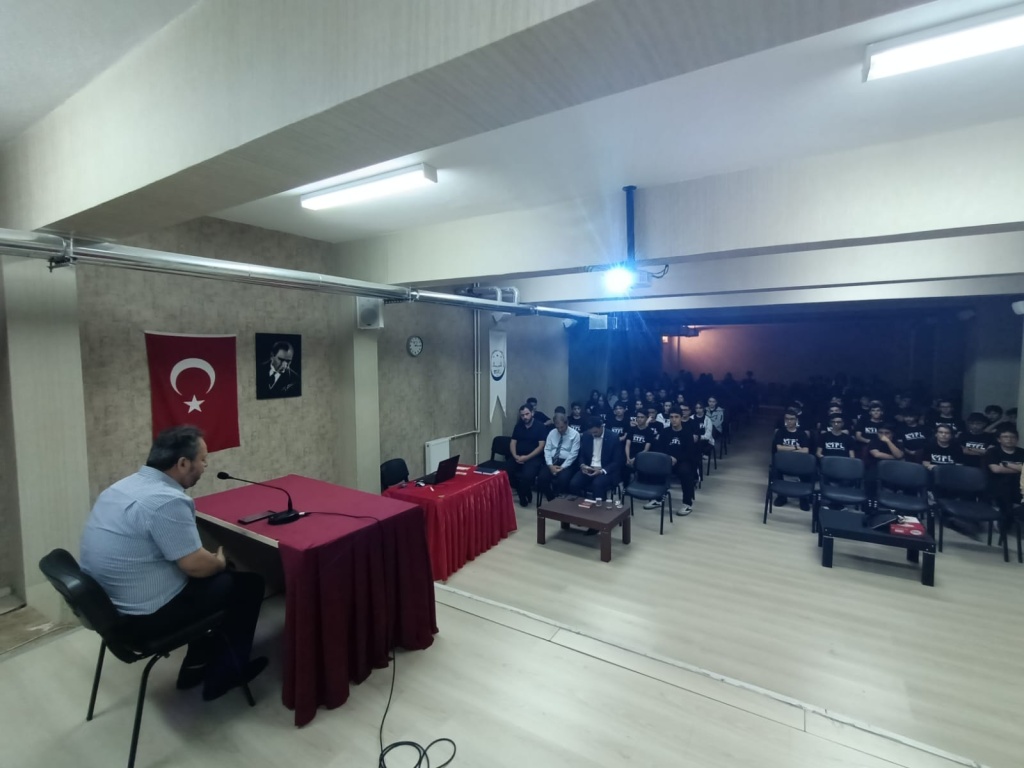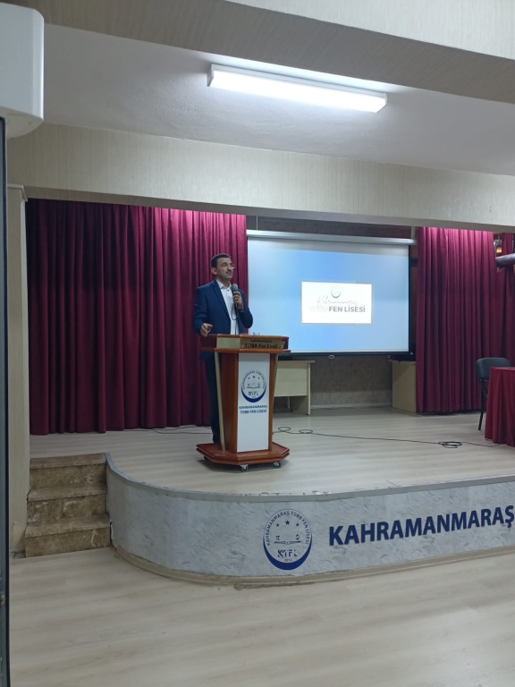 Kahramanmaraş TOBB Fen Lisesi’nde, İl Müftü Yardımcısı Mehmet Demir hocamız “Hz. Peygamber’in Hayatı ve Şahsiyet İnşası” konulu bir konferansla öğrencilerimize hitap ettiler. Öğrencilerin yoğun ilgi gösterdiği programda, Peygamber Efendimiz’in (s.a.s) hayatı üzerinden gençler için örnek alınabilecek yönler ele alındı. Aile ilişkilerine özel bir bölüm ayıran İl Müftü Yardımcısı, “Peygamberimiz eşlerine, çocuklarına ve torunlarına karşı her zaman sevgi dolu ve merhametliydi. Aile içinde adaletli, anlayışlı ve şefkatli olmak bizler için en büyük örnektir” ifadelerine yer verdi. TOBB Fen Lisesi öğrencileri için düzenlenen bu anlamlı program, gençlerin Peygamberimizin şahsiyetini daha yakından tanımalarına ve onu kendi hayatlarına örnek almalarına vesile oldu.